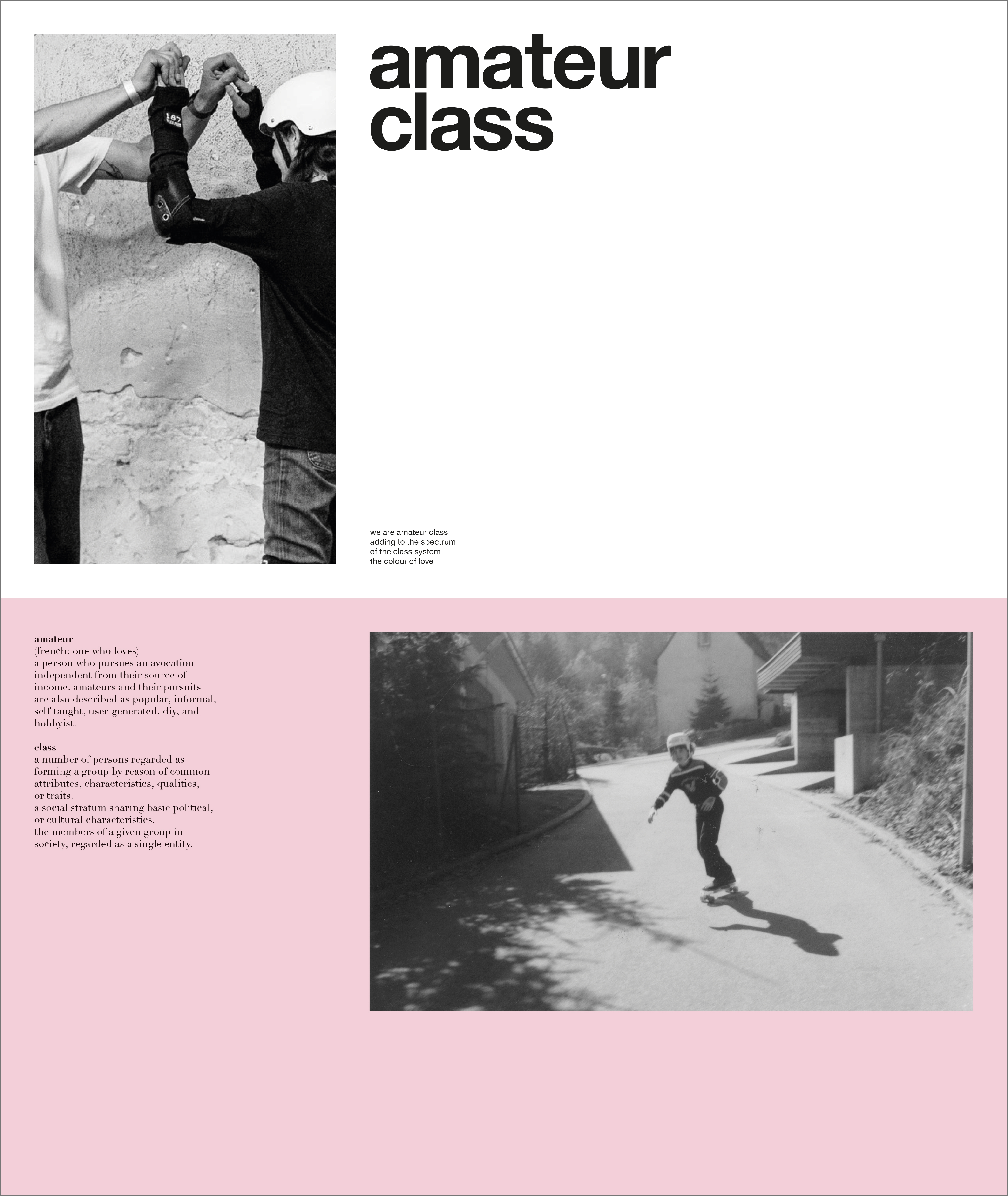 amateur class is a fictitious skate brand and magazine, celebrating the amateur nature of skating. 100% pure playtime. started working on this in 2024.