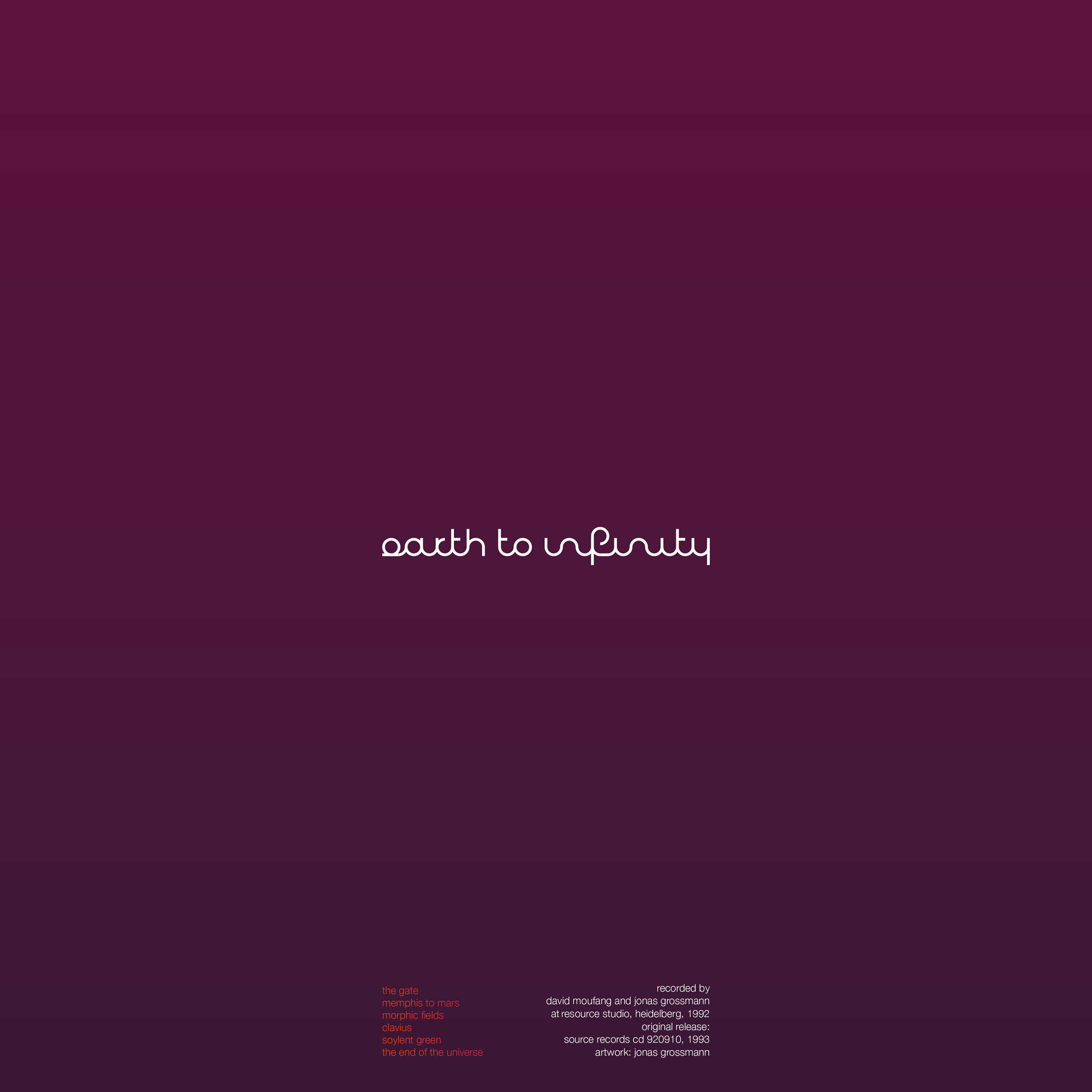 unpublished case study for earth to infinity vinyl re-issue. the re-issue will happen, making the first source records release from 1992 available on vinyl for the first time (the original release was CD only). here again no data from the original artwork survived and most of the original slides used for it are lost too. however, a few outtake slides from the original photo session turned up and were used for the re-issue design sticking more to the original vibe.
