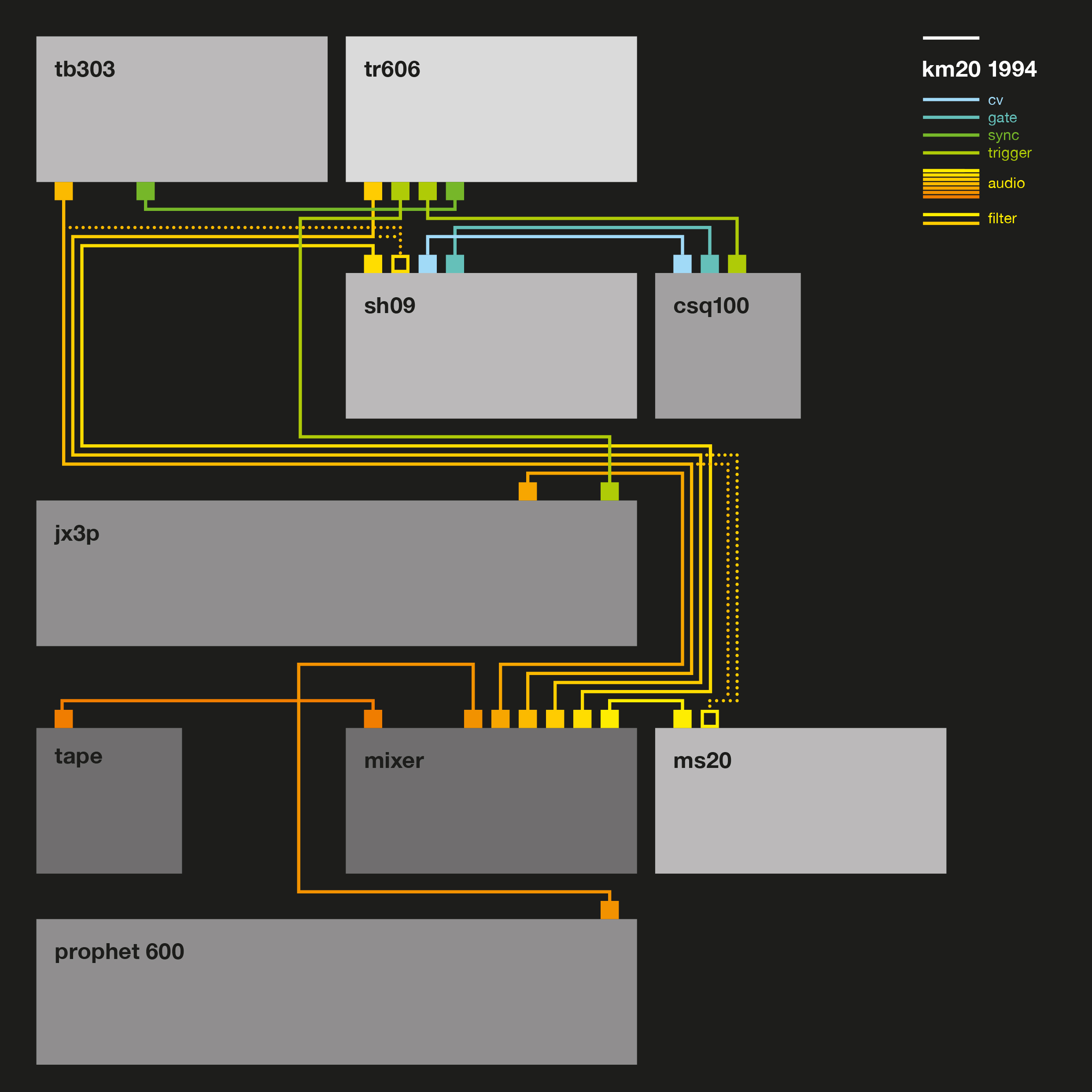 cover for bandcamp uploads of unreleased bton tracks. they are schematic views of my production setups used between 1994 and 2004